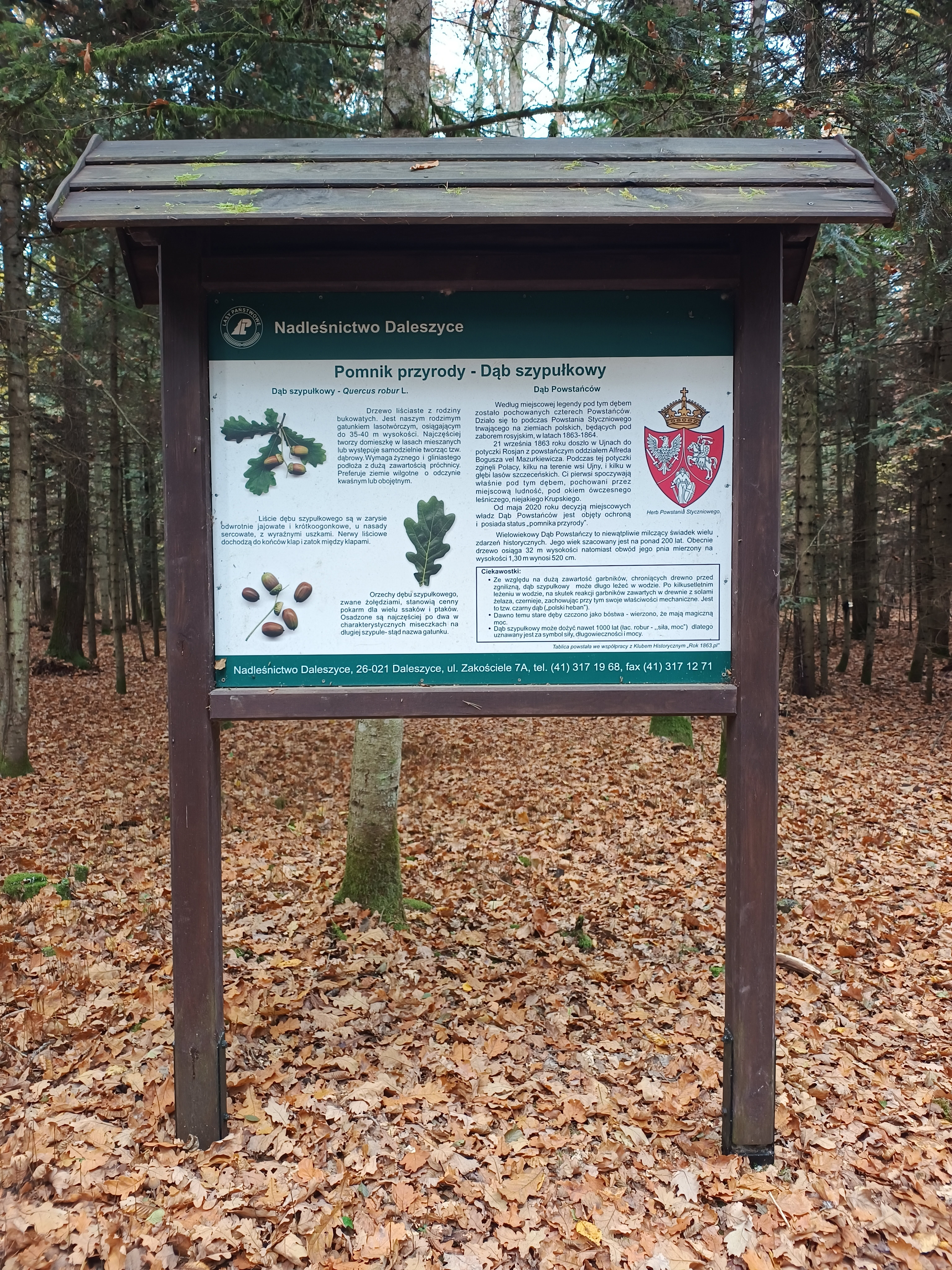 W sercu lasów gminy Daleszyce, nieopodal miejscowości Szczecno, drzemie niezwykły świadek polskiej historii. Ten potężny dąb szypułkowy to nie tylko imponujący okaz natury, ale przede wszystkim strażnik pamięci o bohaterach powstania styczniowego.